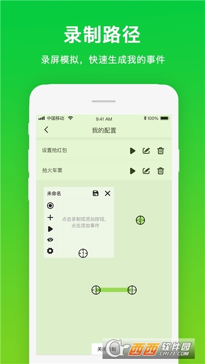 2、应用内自动抢票、自动按键、点击加速等,适用于各类APP。