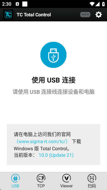 1、安装手机端APK文件,并且使用USB数据线将手机与电脑连接,以启动一次底层程序。确保手机正常启动后,断开USB连接,同时打开手机Wi-Fi,手机端TC程序会自动出现手机的IP地址。