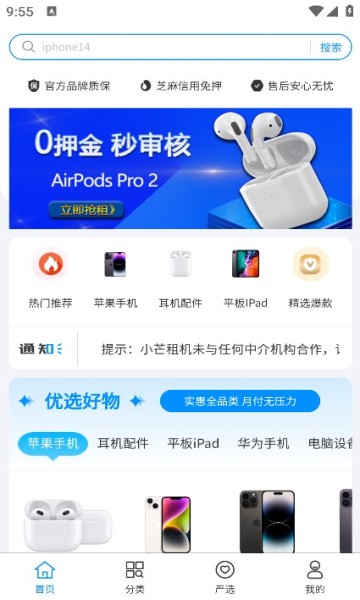 小芒租机是一款非常方便好用的手机租赁平台软件,拥有海量精品电子设备,软件分类详细,操作简单方便,让你可以轻松找到并租赁自己心仪的电子设备,官方正版保障,每天实时更新最新产品,让你可以体验最好的电子设备租赁服务,喜欢这款租赁软件的小伙伴们快来下载试试吧!