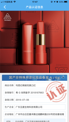3、消费者根据本APP可直接进行化妆品真伪鉴别,质量追溯查询