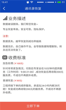 1、加急通道,专家服务:针对数据非常重要紧急的情况,付款后,恢复专家会在10分钟内提供服务,恢复成功率高