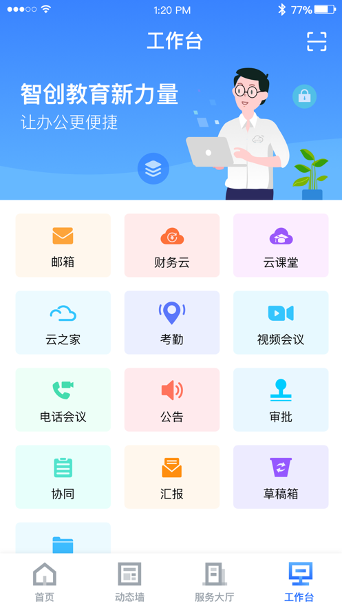 经世云官方下载是一款移动办公助手,软件拥有首页,动态墙,服务大厅,工作台等等功能服务,可以帮助用户更好的高效协同工作。