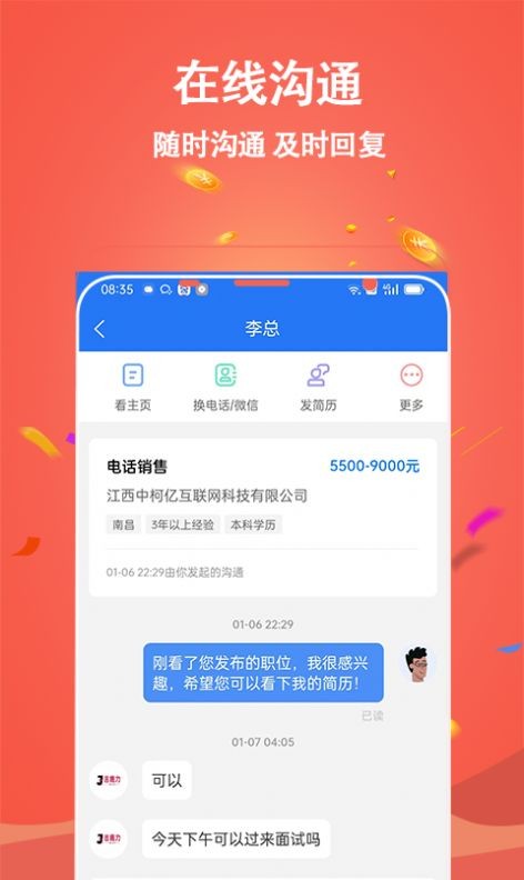1、提供了便捷的简历管理功能,企业可以通过APP查看候选人的简历;