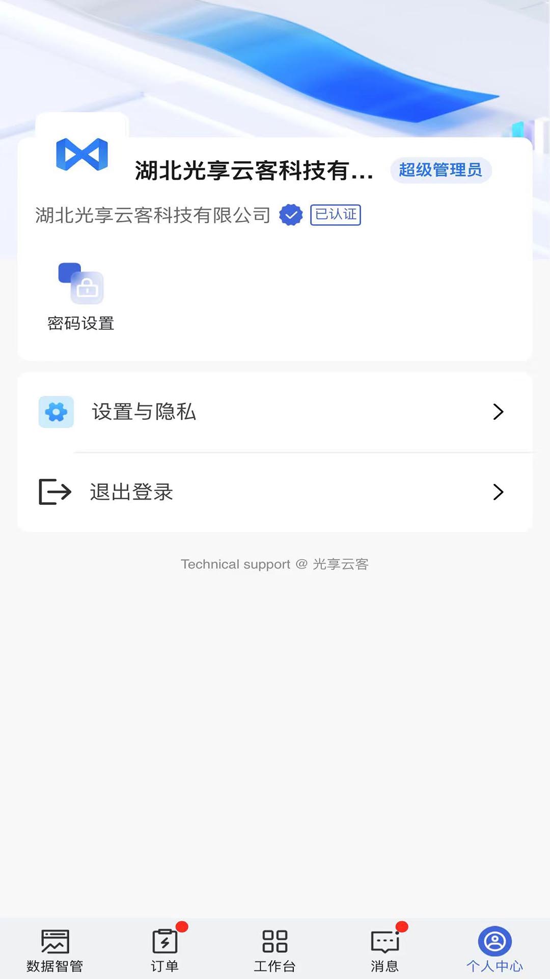 光享云客app是光伏产业移动服务应用,软件拥有数据智管,订单,工作台,消息,个人中心等等功能服务,可以帮助更好的助力光伏产业。