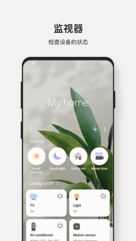 SmartThings是专为三星旗下智能设备所打造的遥控管理软件,帮助大家来集中控制管理自己的家居设备,操作起来非常的简单方便,让大家体验到一个智能化的生活服务,管理起来也是更加的简洁、高效,再也不用为了找不到遥控器而烦恼。