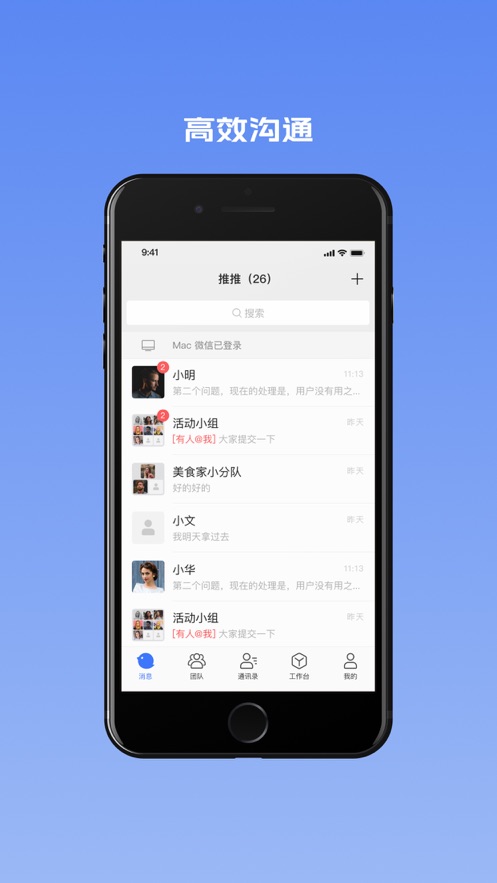 推推app是一款企业级智能业务协同平台,平台拥有消息,通讯录,应用中心,我的等等功能板块,可以帮助用户更好的高效协同工作。