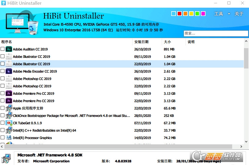 HiBit Uninstaller除了卸载功能还内置很多辅助卸载系统优化的小工具,比如:Windows应用商店应用管理器,程序组件管理器,浏览器扩展管理器,注册表清理程序,垃圾文件清理程序,空文件夹清理程序,快捷方式修复程序,文件粉碎程序(F,进程管理器,启动管理器,服务管理器,计划程序任务管理器,上下文菜单管理器,系统还原管理器。