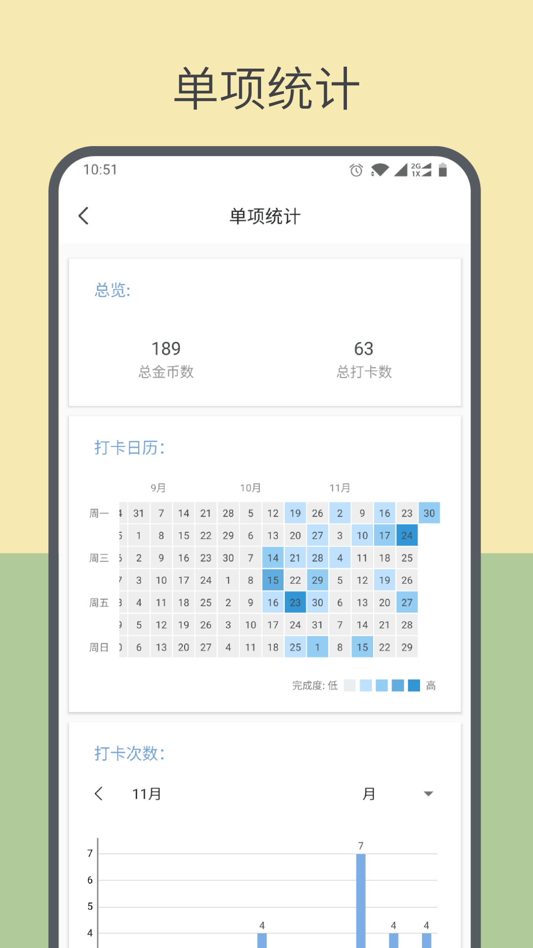 更有日历统计,直观看到打卡频率