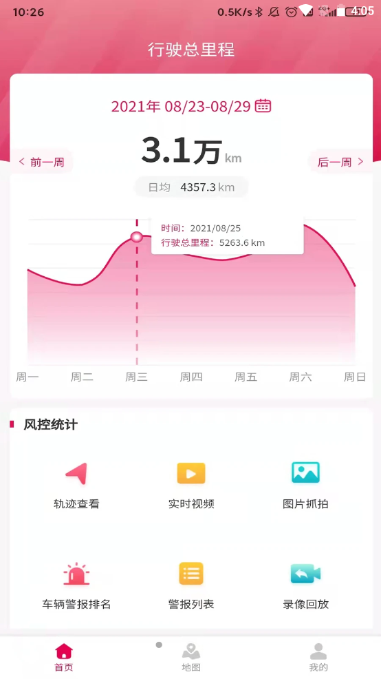 3、基于径卫智能设备硬件获取的数据,对车队进行全方位管理,包括里程统计、警报统计、实时视频、历史轨迹等服务,让工作更加轻松;
