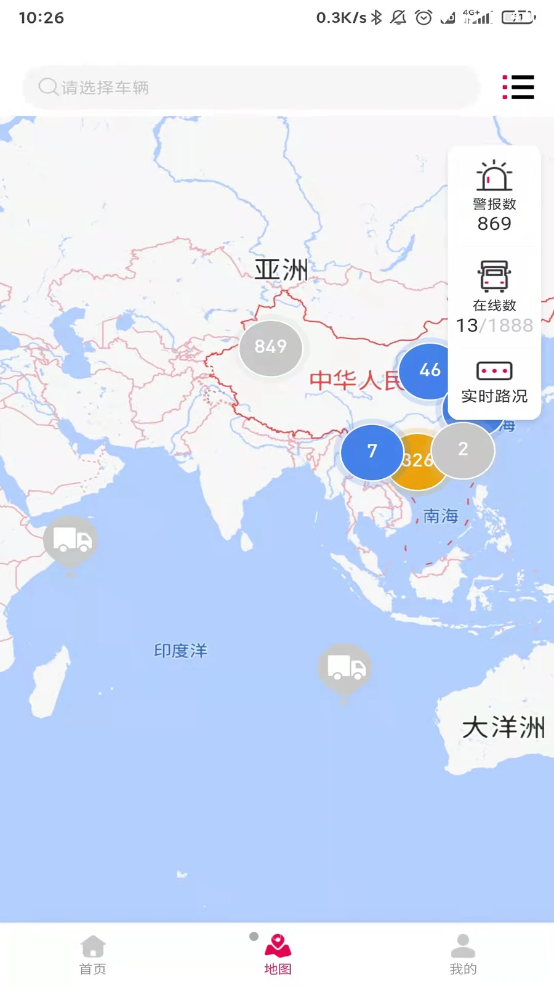 1、掌中地图监控车队,根据车辆颜色即可精准发现高危车辆,所有的用户都可以在平台上查看到相关信息,警戒众多的汽车司机安全驾驶;