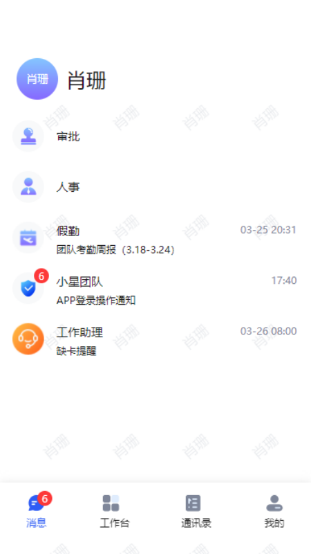 小星助手app下载是一款移动办公服务平台,平台拥有消息,工作台,通讯录,我的等等功能板块,可以帮助更好的智慧高效工作,欢迎前来下载使用。