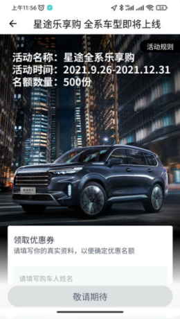 2,所有的车辆活动都会通过专业的渠道模式来进行汇聚和上传,同步更新到软件上的主页面,让用户自己可以更加轻松的看到活动内容,方便进行客户推送。
