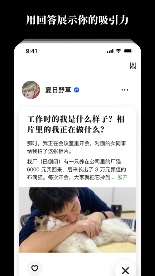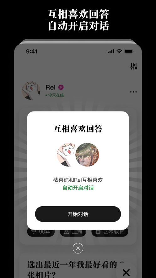 1、全新模式:告别传统的社交模式为用户创建了一个全新的社交模式,可通过问答方式来进行社交