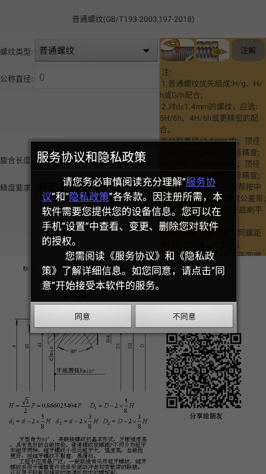 免费下载 大小:4.7M 下载:1次 机械螺纹app V6.3 最新版 支 持:安卓 分 类:安卓软件 大 小:4.7M 版本号:v6.3 最新版 发 布:2025-03-11 17:38:01 手机扫码免费下载 #机械螺纹app V6.3 最新版简介 机械螺纹app是一款机械手机软件,软件拥有螺纹规格查询,螺纹公差查询等等功能服务,使用简单方便,需要的朋友欢迎前来下载使用。机械螺纹app介绍:机械螺纹掌上工具。机械螺纹app功能:螺纹规格和公差查询,包括普通螺纹、梯形螺纹、55°密封和非密封管螺纹、60°密封管螺纹、UN统一螺纹、API油管螺纹的规格、系列、旋合长度、内外螺纹公差自动查询,支持非标螺纹公差查询。螺纹、螺纹毛坯CNC加工程序输出。更新日志隐私合规更新 #机械螺纹app V6.3 最新版截图