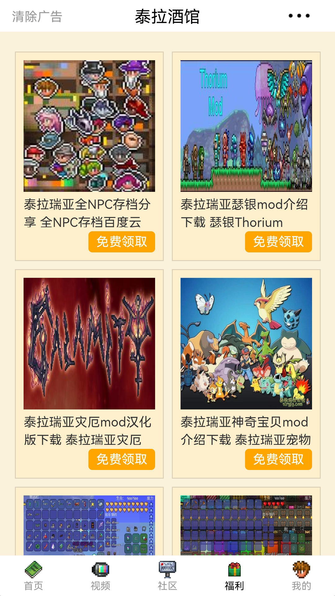 6、在福利栏中,您可以找到各种泰拉瑞亚模组、游戏本体包和存档等资源,根据您的需求进行下载和使用。