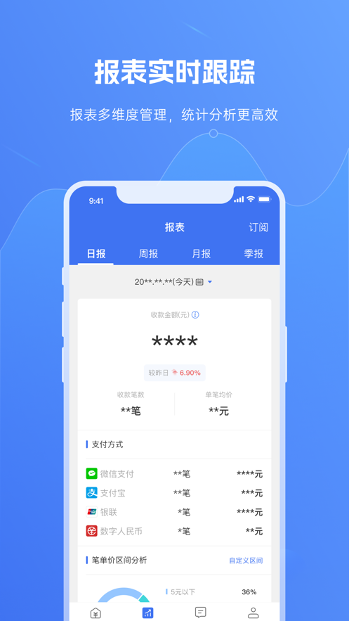 【收款】商户可快速开通多种移动支付收单方式,支持消费者扫码支付、刷卡支付,收款便捷;