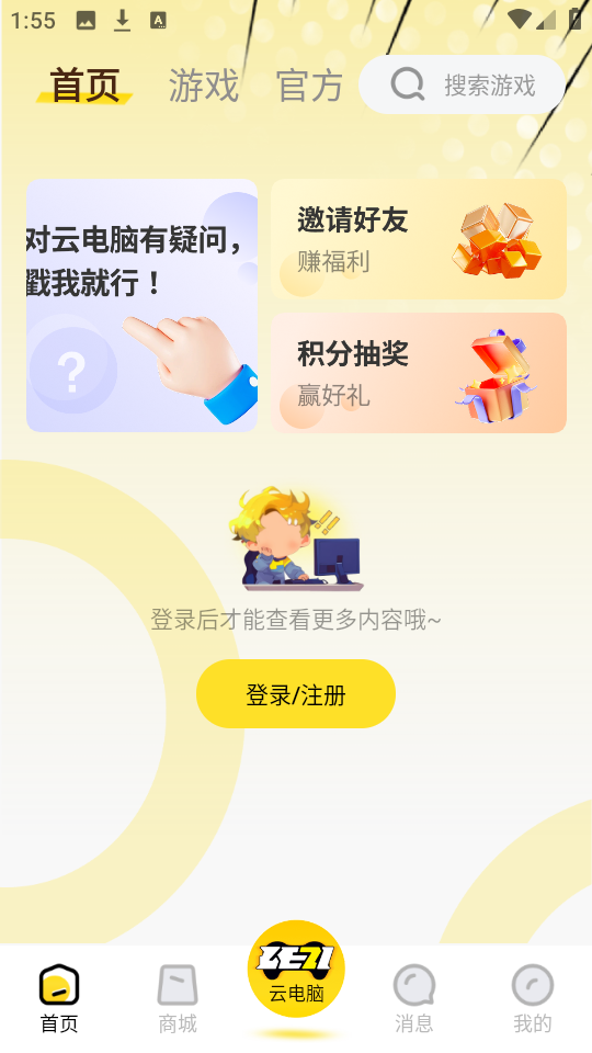 云电脑其实跟人们日常用的电脑功能上没有任何差别,唯一的区别在与云电脑拥有强大的硬件配置。可以让玩家通过云电脑运行大型单机游戏及网游。
