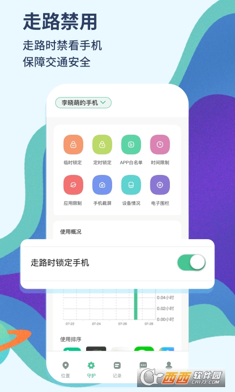 【走路禁用】:您可以设置走路时禁用手机,防止孩子走路时查看手机造成交通意外。