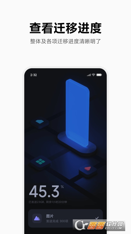 小米换机又叫做叫做小米手机搬家软件,是小米公司推出的智能一键换机软件,可以让您的手机进行很好的数据迁移,用户使用这款软件,就可以自由传输需要的文件了,包括安卓以及iOS。它不仅使用安全,而且传输速度极快,您手机内的大量盛世美颜照以及曾经的欢乐视频都可以快速的传输到新的手机,方便快捷,无需流量。