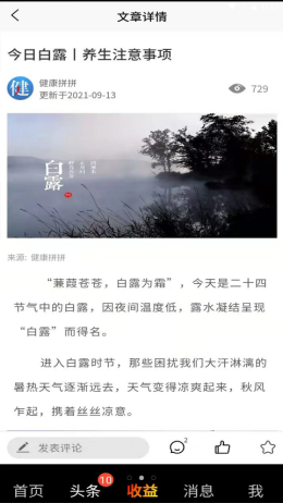 2,健康养生,文章丰富,用户可以点击各种头条的文章数据来查看各种养生的数据资讯内容,每天都会更新,让用户可以更好的吸收各种养生健康的知识。