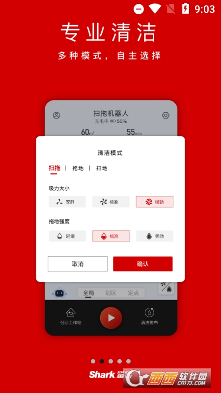 2.自定义清洁:多种清洁模式组合,智能扫拖洗;
