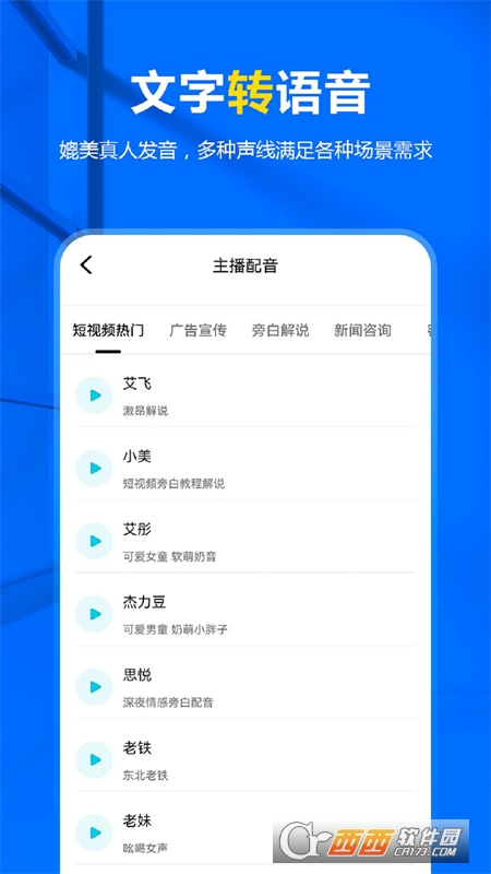3. 文字转语音:媲美真人发音,多种声线满足各种场景需求;