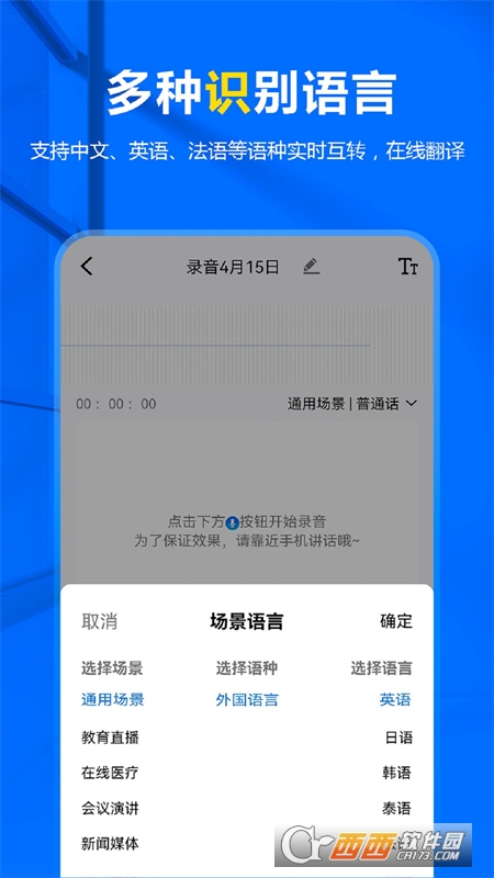 6. 多种识别语言 :支持中文、英语、法语等多种方言外语实时互转,在线翻译。