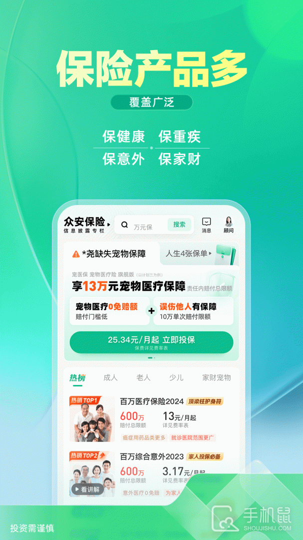 众安保险是一款专业的保险服务app,提供全面的保险产品及相关服务,用户可以方便地查看不同种类的保险产品,并进行在线投保、理赔等操作,还提供保险资讯、风险评估等功能,帮助用户更好地了解保险知识,保障个人及家庭的财产及健康安全。