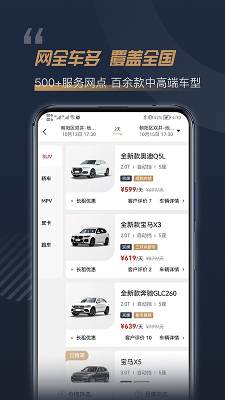 3、专为高端用户打造,豪车租赁第一选择,线上线下一体化的服务;