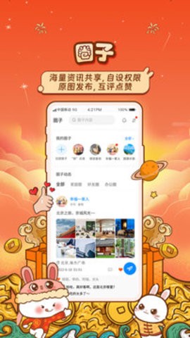 2、圈子:多彩圈子,互动互享,办公生活,互评点赞。
