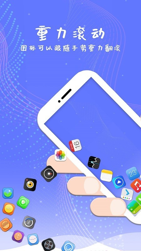 不同于固定的图标,会滚动的图标很炫酷哦!应用中的图标跟随着手势滚动起来,相互碰撞着,相互依偎成不同的图形。应用图标相互独立,不断滚动,不断的碰撞。也可以设置成动态壁纸。手机的照片也可以增加为图标,可以增加应用图标。可以做为透明屏幕使用,让手机变成透明。增加设置功能,强大的设置功能满足需要。