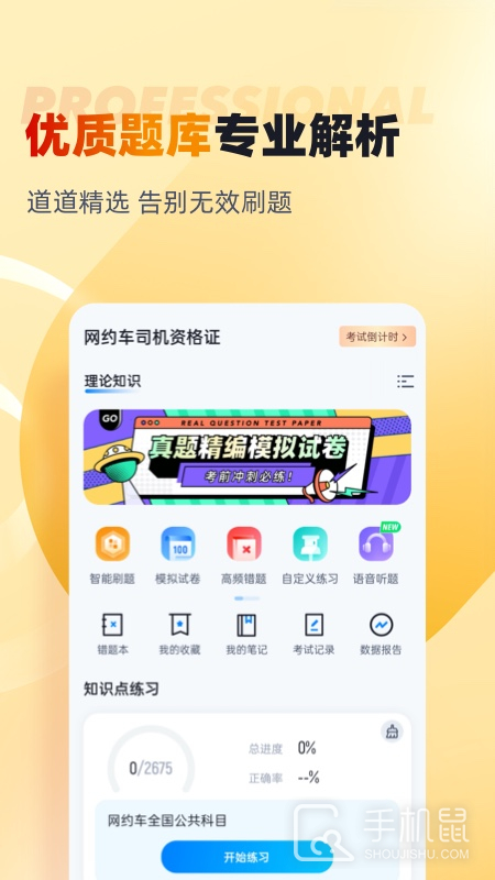 网约车司机考试聚题库是一款专为准备网约车司机资格考试的用户打造的辅助学习工具,这个应用汇集了大量与网约车驾驶有关的考试试题,涵盖了交通法规、道路安全、驾驶技巧等多个方面的知识点,用户可以通过学习这些题目,加深对驾驶技能和相关法律法规的理解,提高通过考试的准确性,该应用提供了随机测试、模拟考试等多种学习方式,让用户能够灵活安排学习时间,并且通过答题错误反馈、成绩排名等功能,能够追踪学习进度并找到自己的不足之处,还有每日一题、错题本等实用功能,帮助用户巩固知识点。