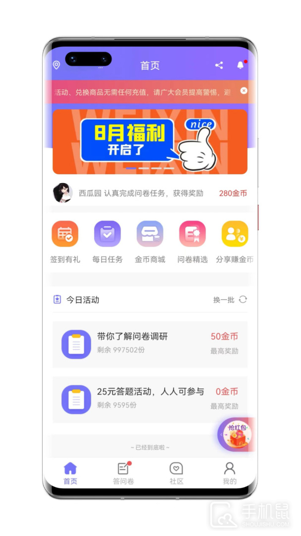"拼任务"是可以轻松赚钱的任务分享平台,每天都有海量的订单可以领取。用户可以利用闲暇时间参与调查轻松获得收益,每天签到还可以获得积分,积分越高在原有红包奖励的基础上可以再翻倍。而且这里小任务的形式多种多样,不管你擅长什么类型都可以在这里找到合适的任务,让你躺在家里也能轻松赚钱。