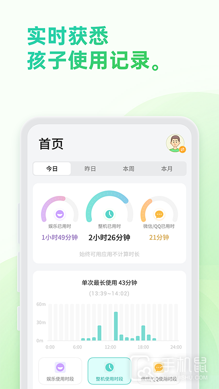 2、自动锁屏,可自在锁定孩子手机,自动阶段性锁屏,学习与游玩规律性高