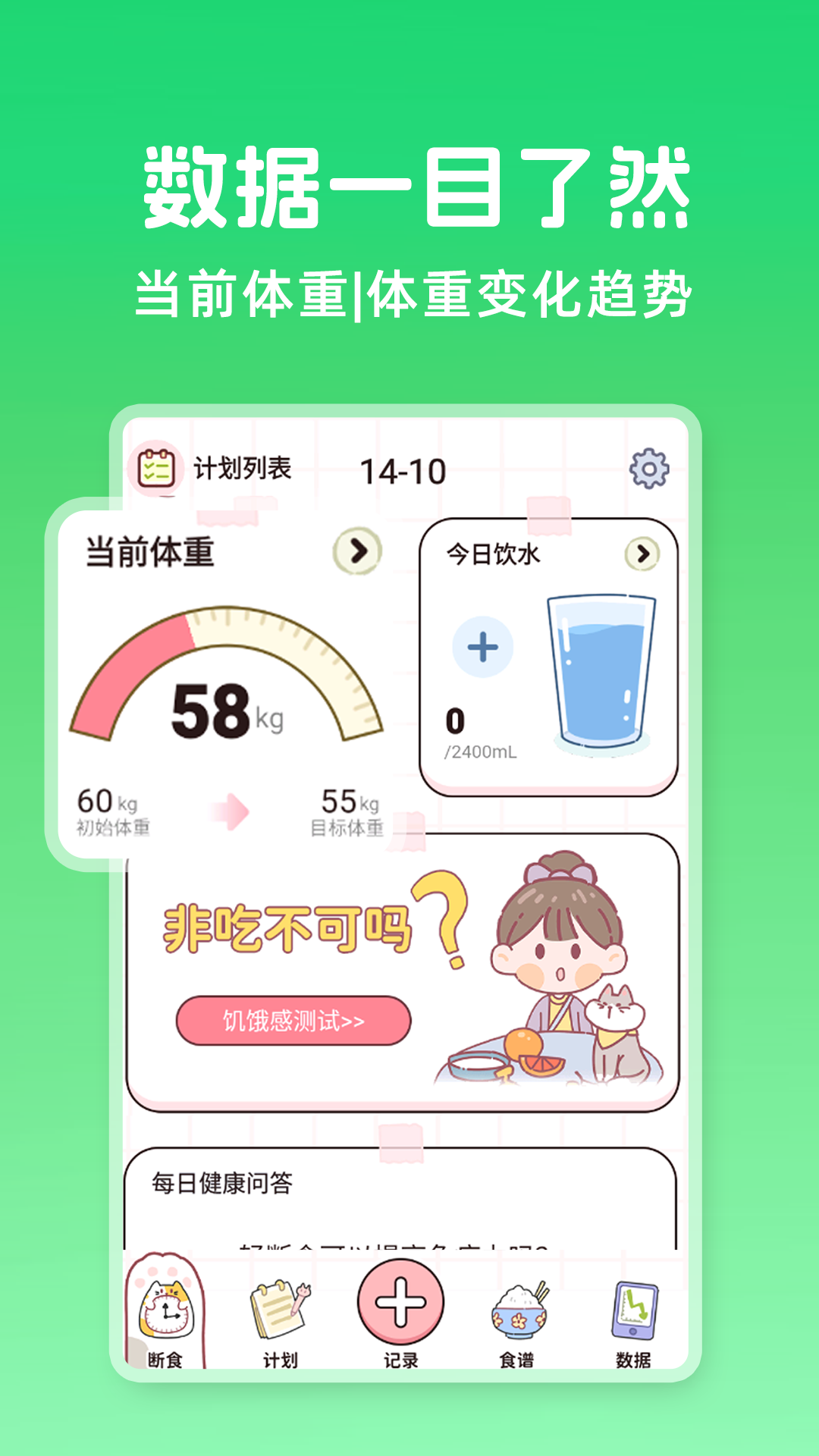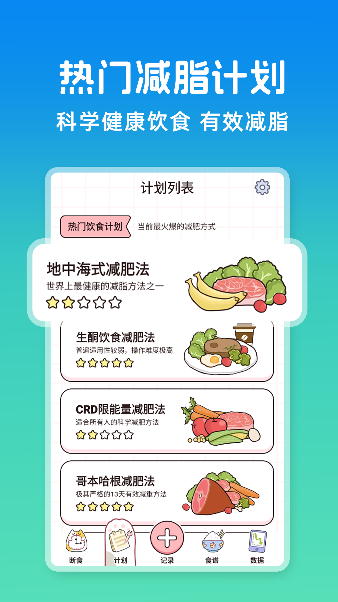 提供多种科学断食方案,帮助用户根据自身需求选择合适的轻断食计划,逐步减脂瘦身。