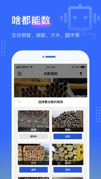 点数相机app是一款手机拍照自动点数的app。该软件专为广大工友们设计,智能拍照识别钢管数,以及在需要查询数量内容也可以轻松快速完成数量计算,准确率高,识别速度快,是一款手机拍照点数神器,所适用范围也是非常全面的,钢筋、圆木等,实用便捷,有需要的小伙伴们快来下载体验吧!