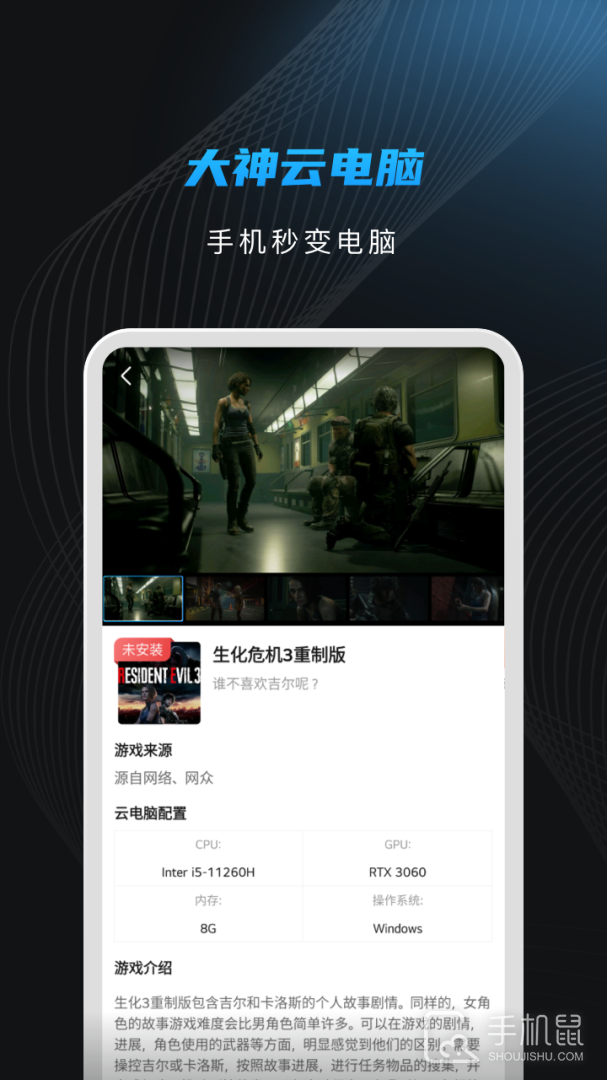 3. 手机操控:用户可以通过手机操控云电脑,具有超低延迟的反应速度,随时随地开玩。