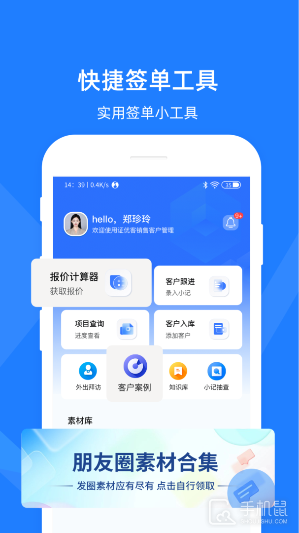 2.新增签单工具,智能名片、智能方案书、客户案例等定制化签约工具,提升业务效率,助你签单事半功倍;