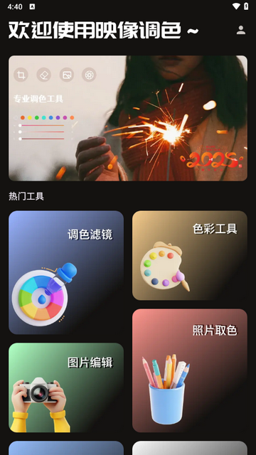 映像调色app是一款非常不错的图片处理手机软件,提供图片色彩调整工具,根据需求改变图片的色彩效果,具备图片裁剪和旋转功能,丰富多样的编辑工具免费去选择,手机去开启美图的打造都是极其的轻松,不同的美图操作更方便,满足不同的创作需求。