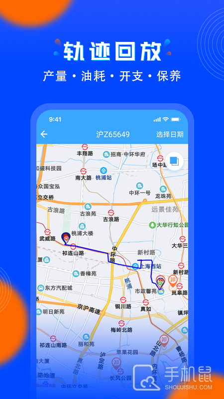 2、轨迹查询,可以按日期,时间段查询行程轨迹以及回放轨迹。