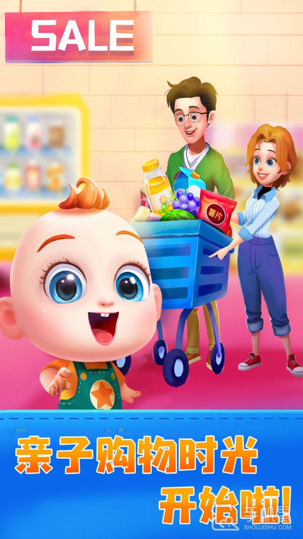 1、模拟真实的超市购物场景和角色:丰富的商品、清晰的购物分区、购物车、超市收银员等
