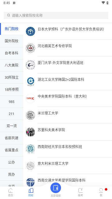 1、院校智慧主页:全国各大艺术院校在APP上有对应的微主页,用于发布院校资讯。