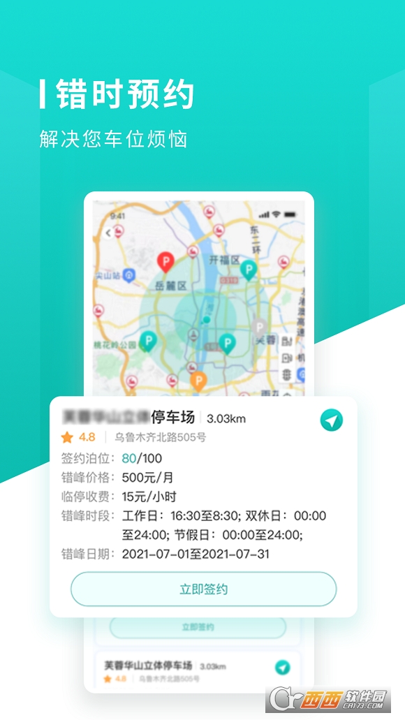 3、车位预订,可直接预约指定停车位使用,支持按时租用、按月租用;