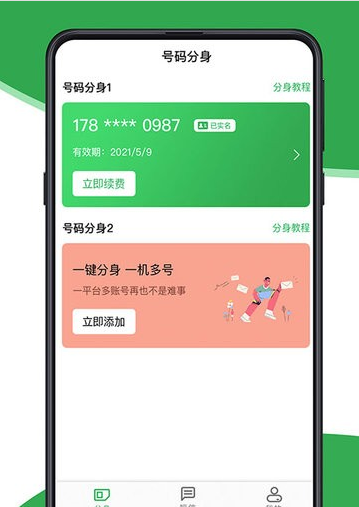 号码分身是一款高安全性.防骚扰.保护隐私的通话工具,用户无需新的SIM卡,即可便捷领取分身号,在同一部手机上额外使用多个新号码,轻松实现一卡多号。新号码与本机号码一样,可以正常接收短信.注册账号和接听电话。分身号用于注册需要多个账号或想保护隐私而不想给出真实号码的情况,例如房屋买卖,交友.网购.装修.打车等容易产生骚扰的场景。
