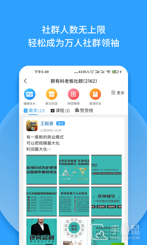 "群有料"是一款集群内社交、信息分享和资源交换于一体的安卓应用,无论你是参加工作、学习或兴趣小组的群聊,还是与家人、朋友组成的社交群,这个应用能够帮助你更好地沟通和互动,通过"群有料",你可以清晰地浏览每一个群聊的热门话题、活跃成员、优质资源等信息,轻松掌握群内动态,你还可以方便地在群内分享自己的想法、图片、链接等内容,与群友们进行互动和交流,"群有料"还提供了资源交换功能,你可以在群内发起或参与资源共享活动,帮助大家更好地获取所需资料。