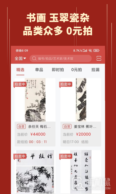 1、应用为客户进行了拍品分类,让客户可以快捷查看拍品
