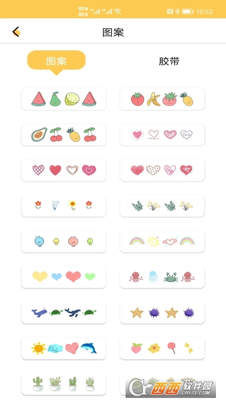 加入1000多种表情贴图,可以从相机或相册生成贴图,可以对贴图任意移动,放大,缩小。多种胶带与图案任你选择。