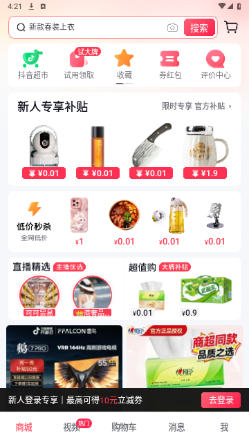 抖音商城版会不时推出一些非常优惠的低价商品供您选择,让您以最便宜的价格购买最实惠的商品。同时,还有很多官方的优惠活动,让用户购物更省钱省心,是我们日常购物必备软件。还在等什么?喜欢看购物的朋友们不能错过,快来下载买买买吧。