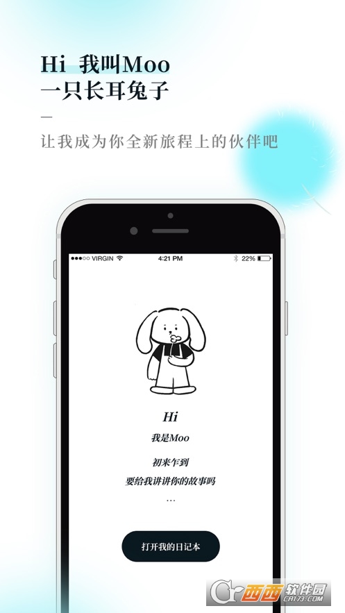 嗨,我叫Moo,一只长耳兔子,让我成为你全新旅程上的朋友吧。