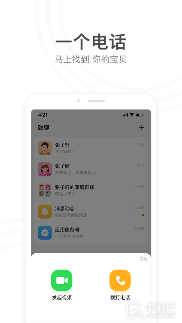 小天才app是方便家长和孩子联系的一个软件,家长可以通过这款应用给孩子打电话,知晓孩子的位置,守护孩子的安全,放置孩子走丢,孩子也可以通过这款软件和家人们联系。软件集成了定位、通话、微聊、安全守护等多重功能于一体,旨在为孩子提供一个安全、健康的成长环境,同时也为家长提供了便捷的亲子管理工具。家长可以随时查看孩子的位置信息,了解孩子的动态。定位功能还可以反馈孩子目前的运动状态,让家长更放心。